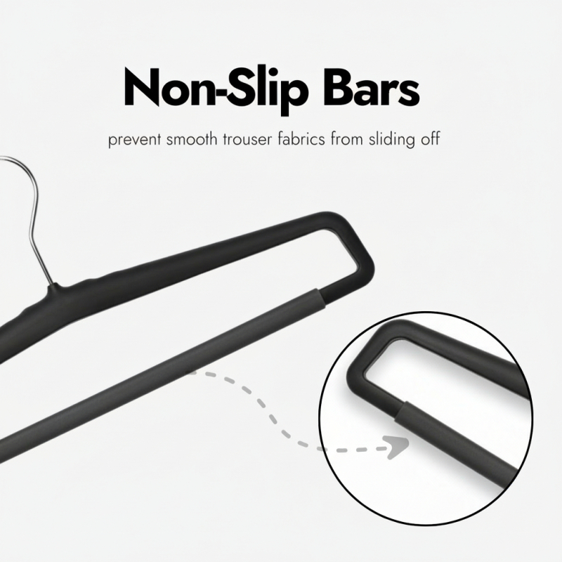 Cintres Commerciaux Rectangulaires | Barre Pantalon Antidérapante | Noir | 37 cm