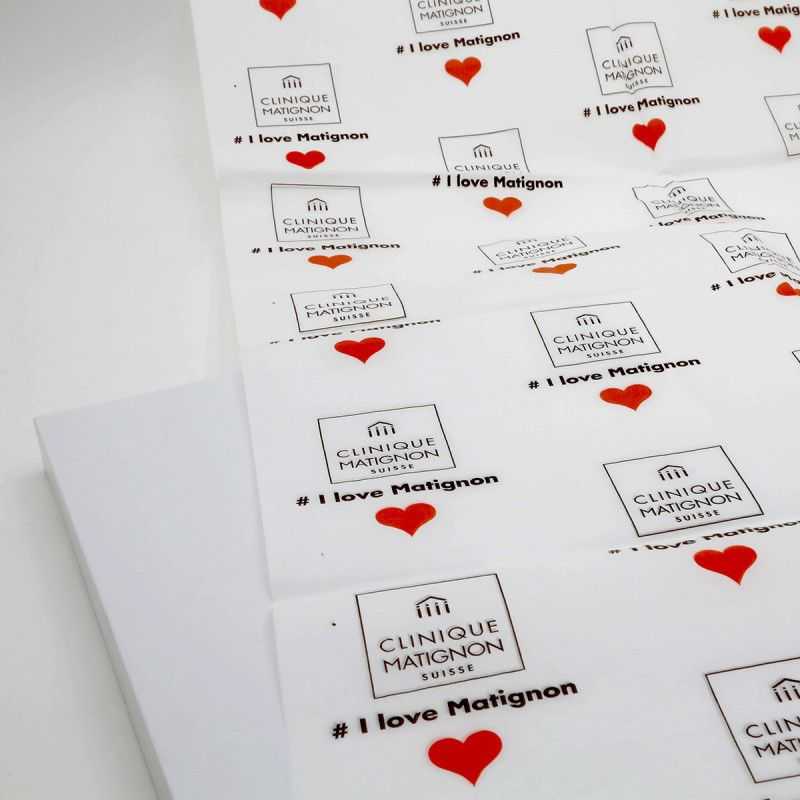 Notre papier de soie est disponible en format 67x97 cm, idéal pour une grande variété d'utilisations. Vous pouvez le personnaliser en 1, 2 ou 4 couleurs, grâce à une teinture dans la masse qui garantit une résistance exceptionnelle au dégorgement et à la lumière. Cela signifie que les couleurs restent vives et éclatantes, même après une utilisation prolongée.