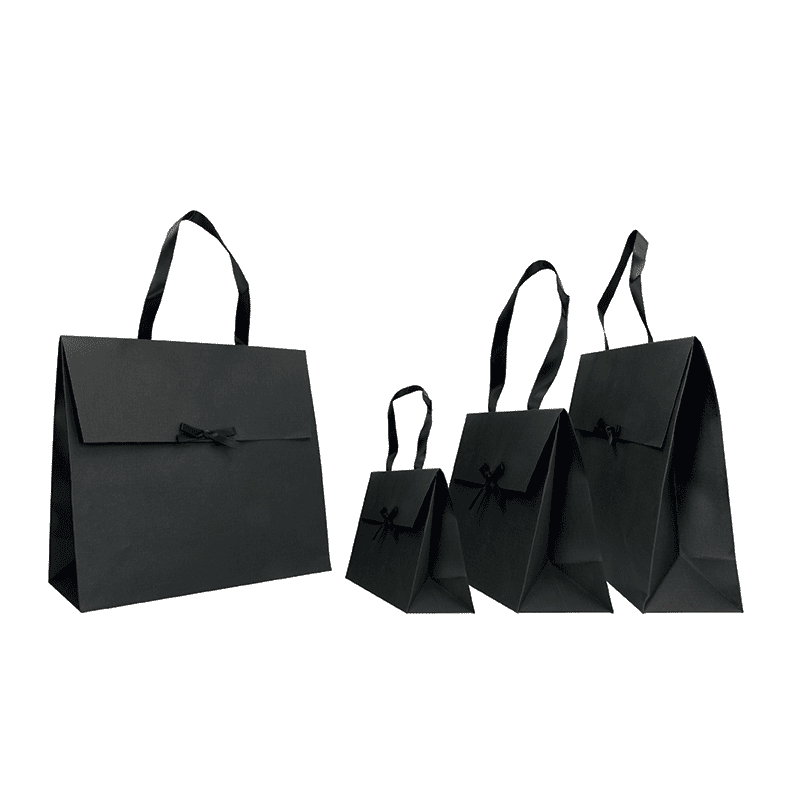 Papier recyclable Anses Kelly noires 3 tailles disponibles Rouge / Blanc / Noir Colis de 100 unités 1,18 € HTVA / unité