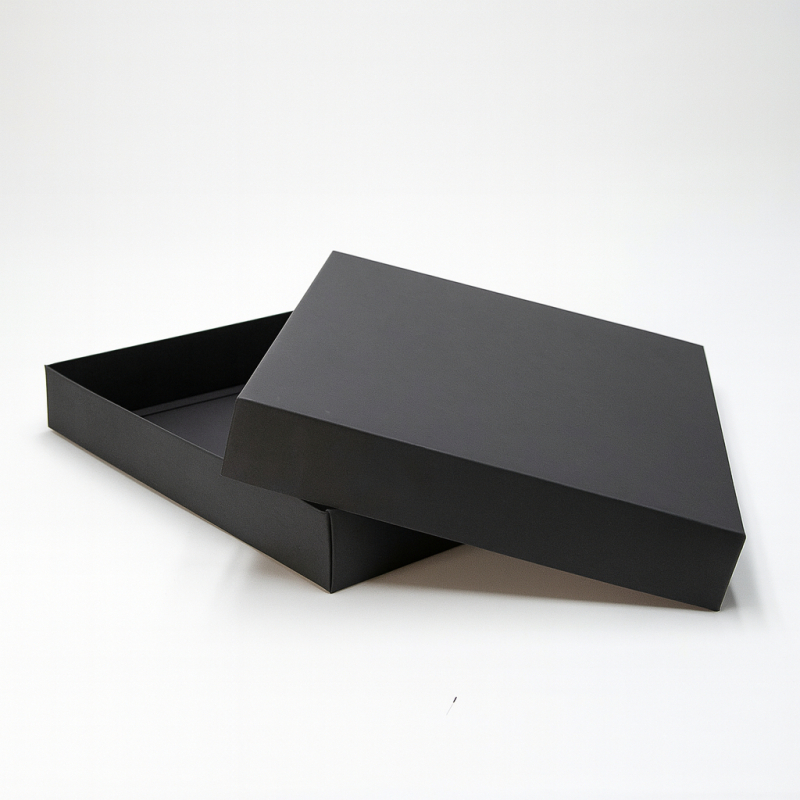 La boîte CAMPANA avec couvercle (31x22x5 cm) est une boîte rigide légère au design élégant, idéale pour la présentation de produits premium. Disponible en noir mat et blanc, elle offre un rendu sobre et professionnel adapté au e-commerce, aux boutiques et aux coffrets cadeaux.