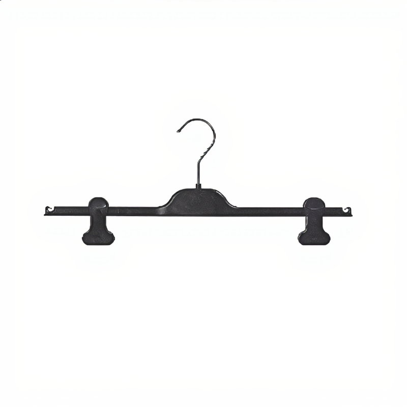 Fabriqué en plastique noir robuste, ce cintre professionnel pour magasin est équipé d’une barre horizontale solide et de deux pinces coulissantes réglables permettant de maintenir fermement les vêtements sans les abîmer. Les pinces s’ajustent facilement sur la barre afin de s’adapter à différentes tailles de vêtements, ce qui en fait un cintre polyvalent pour pantalons et jupes.