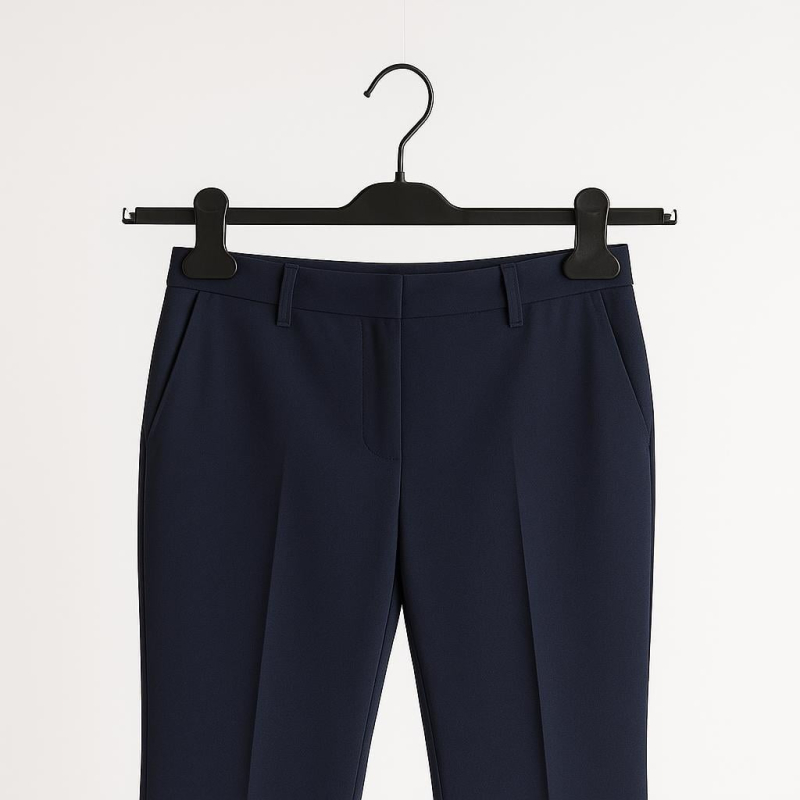 Ce cintre est la référence du secteur pour présenter jupes, pantalons, shorts et maillots de bain. Contrairement aux cintres traditionnels, ses pinces permettent de suspendre les vêtements à la verticale sans les plier, évitant ainsi les plis et permettant aux clientes d'apprécier pleinement la longueur et la coupe de l'article.