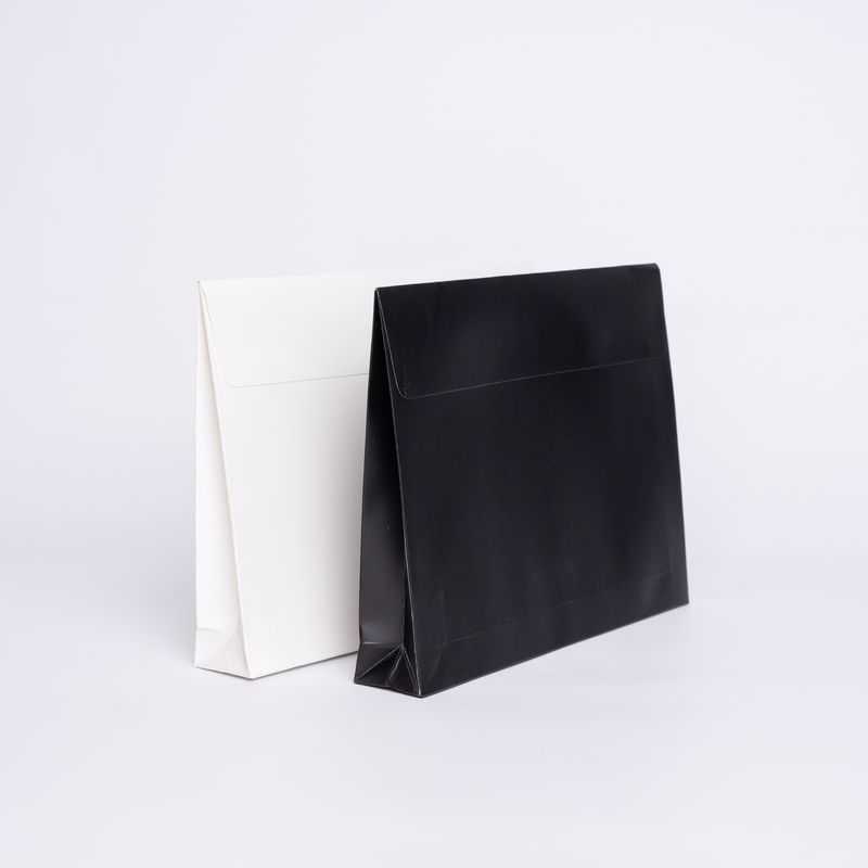 Les deux versions disposent d'un soufflet inférieur et de deux soufflets latéraux, leur permettant de se tenir debout sans support supplémentaire. Elles sont disponibles dans un grand format de 32x10x40 cm, offrant un espace généreux pour divers produits tout en maintenant une apparence moderne. De plus, ces pochettes sont proposées en 6 tailles différentes, 2 couleurs élégantes, et peuvent être personnalisées avec 2 techniques d'impression, vous offrant ainsi une grande liberté créative.