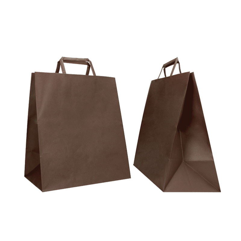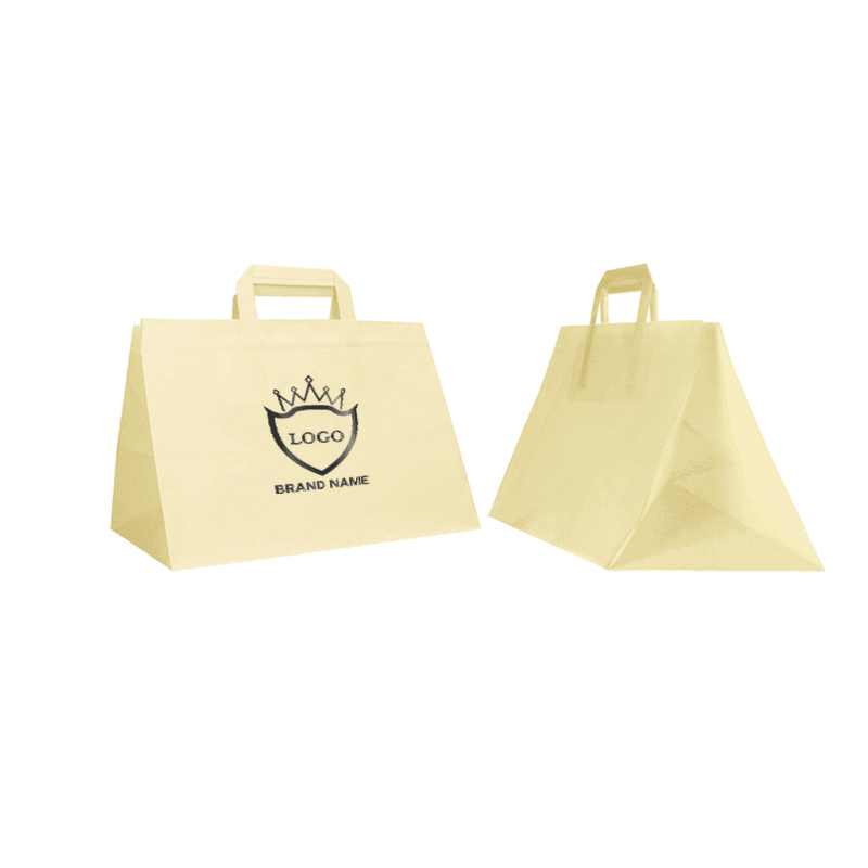 Lorsque votre emballage doit aller vite au comptoir, être esthétique dans les mains des clients et s’aligner sur les standards modernes de durabilité, le BOX FLAT HANDLES COLORED BAG répond présent sur tous les plans. Conçu en 90 g/m² kraft et doté de flat paper handles confortables, ce kraft paper bag polyvalent est le support fiable que votre équipe choisit quand les commandes s’accumulent et que l’image compte. La silhouette side gusset paper bag ajoute de la capacité et aide le sac à rester ouvert pour un chargement rapide et propre, tandis que la large palette de fonds — Black Kraft, White Kraft, Natural Kraft, White, Black, Brown 476U, Ivory — vous permet d’ajuster une toile fidèle à votre marque. Avec une flexographic printing nette et économique, votre logo se lit clairement à distance et continue de travailler bien après l’encaissement.