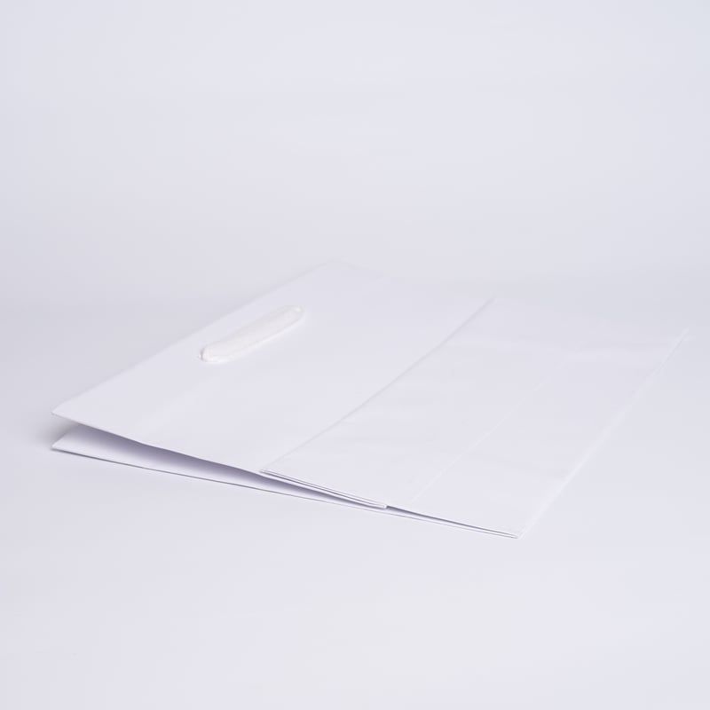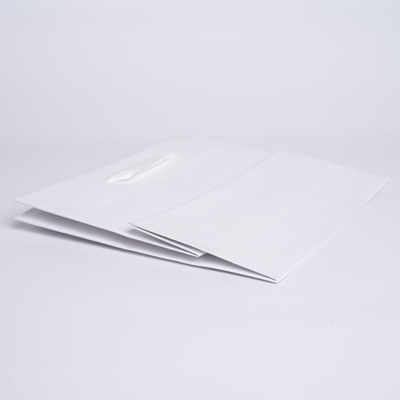 Ce sac moderne, original et chic est conçu pour les entreprises souhaitant se démarquer avec des emballages luxueux. Fabriqué à 100 % en papier kraft, teinté dans la masse en blanc ou noir, il se distingue par sa texture élégante et son léger relief, offrant une expérience de marketing sensoriel réussie. Les poignées en coton nouées de 4 cm de large ajoutent une touche de raffinement tout en assurant une prise en main facile et sécurisée. Cette combinaison de matériaux haut de gamme et de design élégant fait de ce sac un choix idéal pour ceux qui souhaitent souligner l'exclusivité de leur marque.